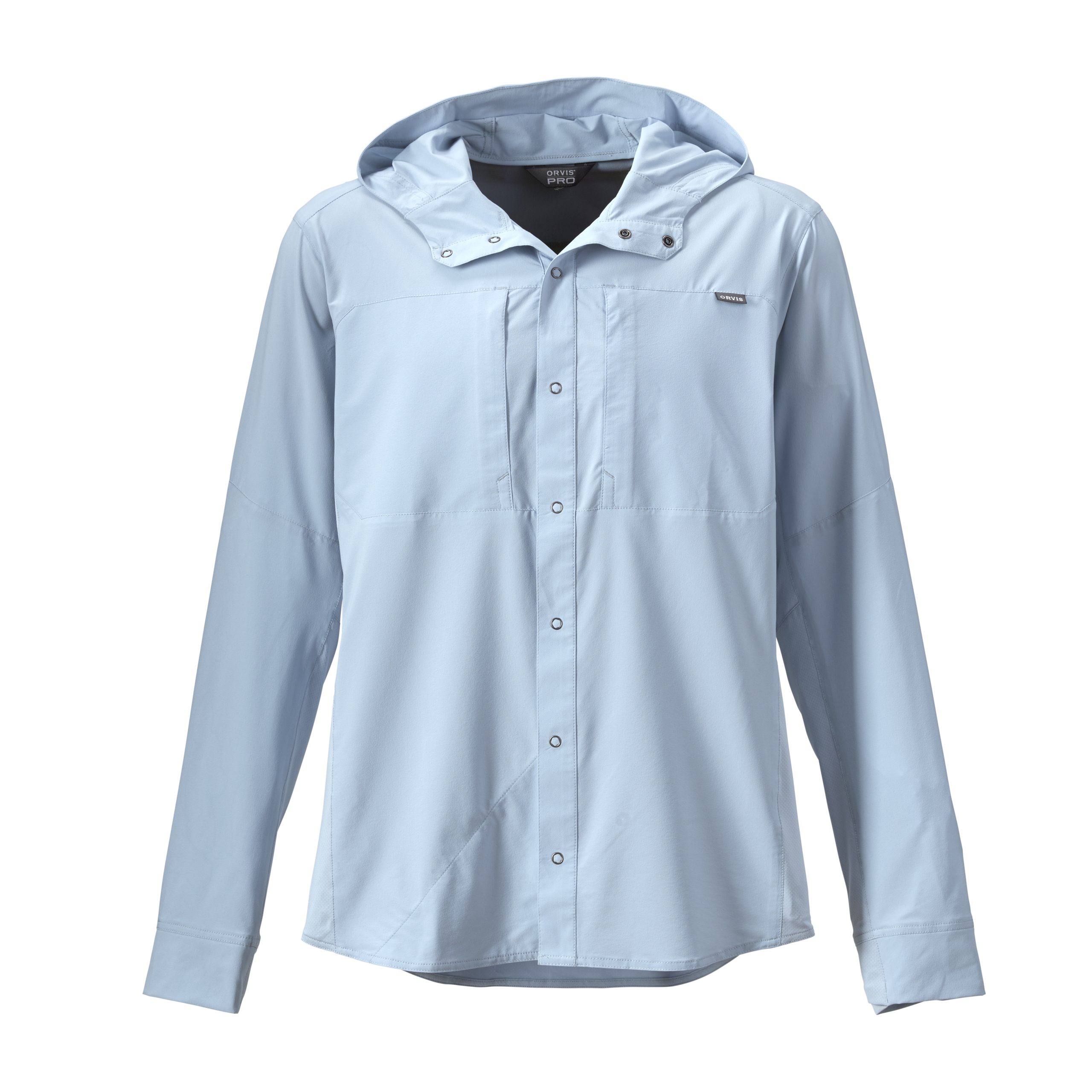 At first glance, the industry’s highest UPF rating of 50+, even when wet, in our PRO Hybrid Hoodie might seem like its standout performance tech feature. Until you put it on, and it becomes apparent: This hoodie is so light, it hardly feels like you’re even wearing one. The main body and vented hood are made from a stretchy, woven fabric that allows for enhanced comfort—even when making aggressive movements like casting for distance, poling, or back rowing the boat above a pod of risers—while the side panels, under sleeve, and back panel are temperature-regulating Coolcore® knit.