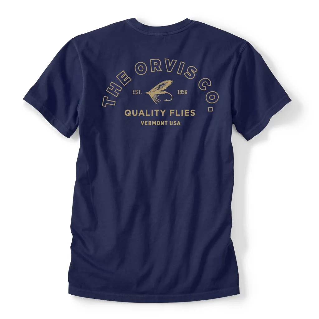 The breathable cotton-rich performance blend Quality Flies T-Shirt celebrates Orvis’s rich fly-fishing legacy with a heritage graphic.