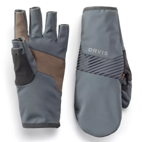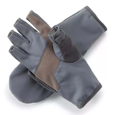 Our convertible softshell mittens offer full-use dexterity when you need it, warmth when you want it. Fold-away convertible mitts tuck away, eliminating line interference. Made of abrasion-resistant softshell fabric with grid fleece backing and DWR coating. Three-layer AX® Suede synthetic leather palm. In turbulence.