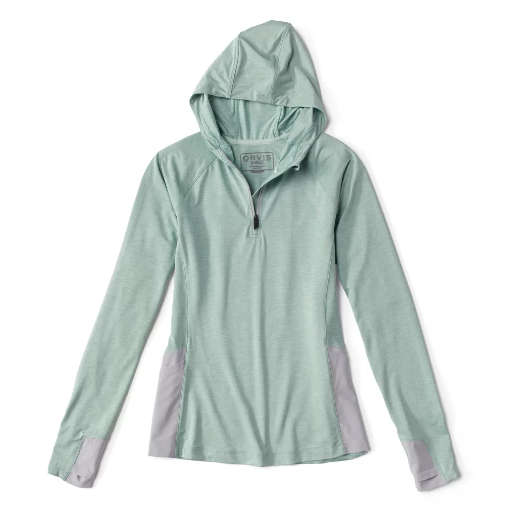 In post-fishing discussions with our Endorsed Guides and Outfitters who operate near the blindingly hot and humid equatorial zones, we consistently heard two overwhelmingly common observations on the original UPF 50+ Women’s PRO Sun Hoodie: 1, It fits perfectly. And 2, Design us one even more lightweight and breathable. So we did.
