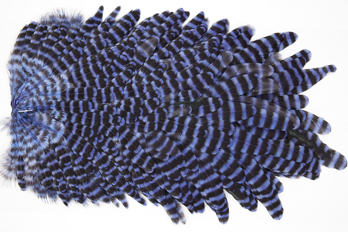 WHS19 is a Whiting Hen Saddle of Grizzly Royal Blue color. This product may vary slightly,due its natural substrate. This is NEW UNUSED HACKLE.