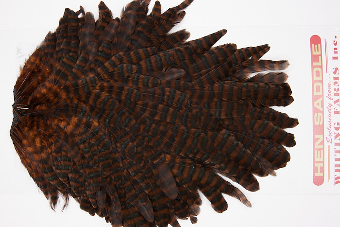 WHS5 is a Whiting Hen Saddle of Grizzly Coachman Brown color. This product may vary slightly,due its natural substrate. This is NEW UNUSED HACKLE.