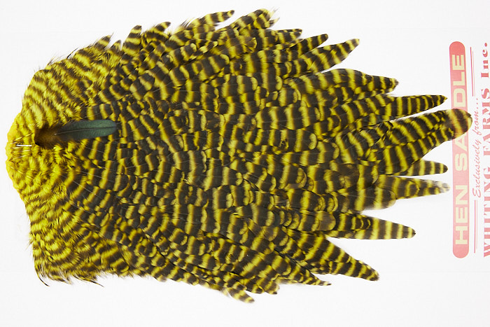 WHS6 is a Whiting Hen Saddle of Grizzly Yellow color. This product may vary slightly,due its natural substrate. This is NEW UNUSED HACKLE.