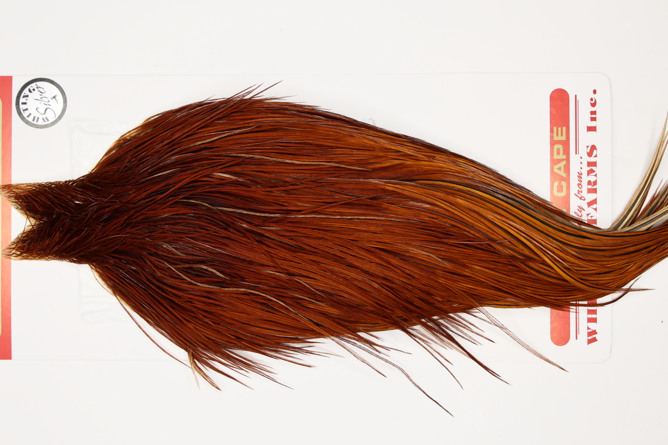 WSGC-7081A Whiting Silver Grade Cape Brown Ties Sizes 10-20. This dry fly cape ties predominately sizes 10 to 20. The photos shown are the actual photos of this dry fly cape.